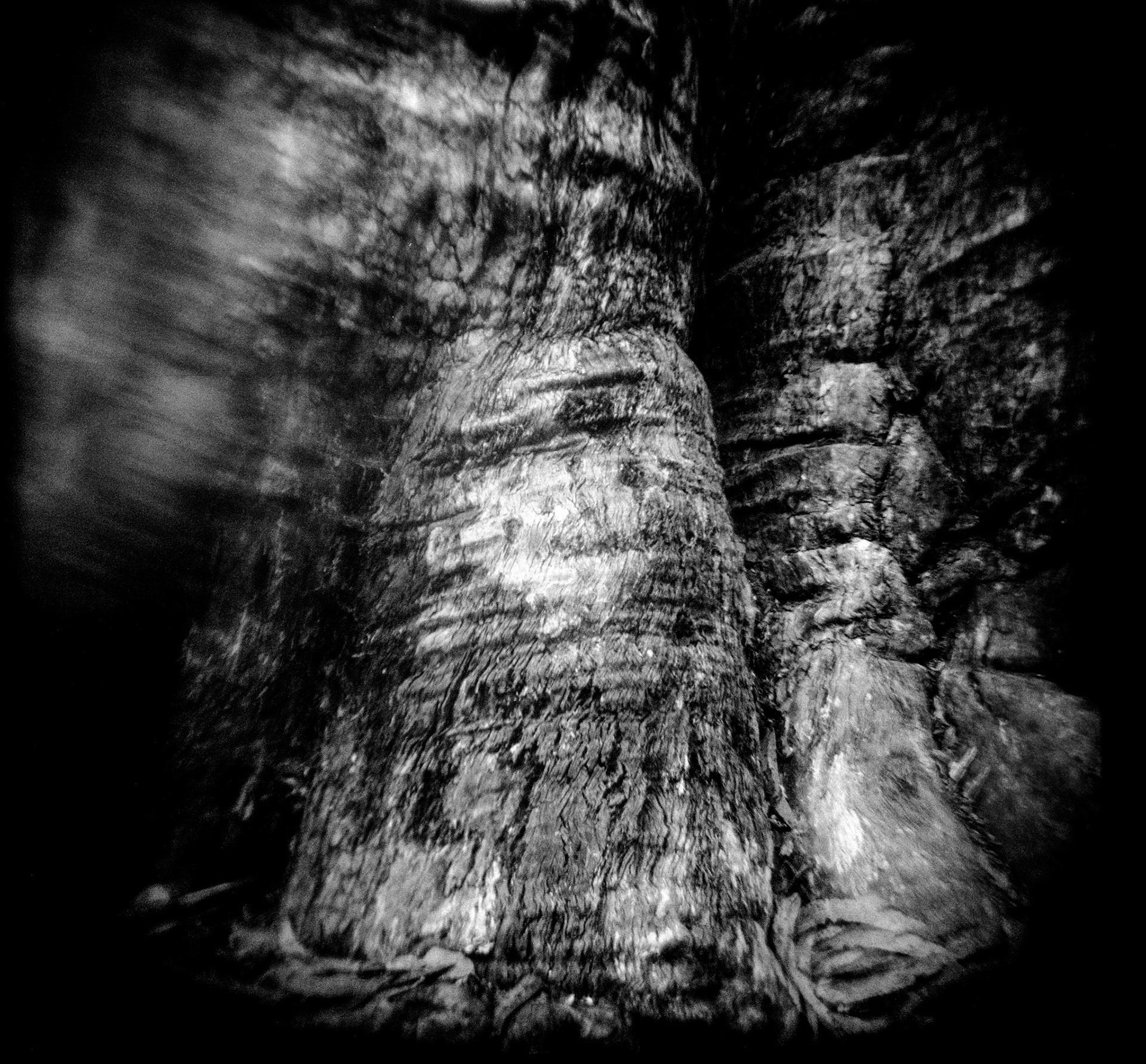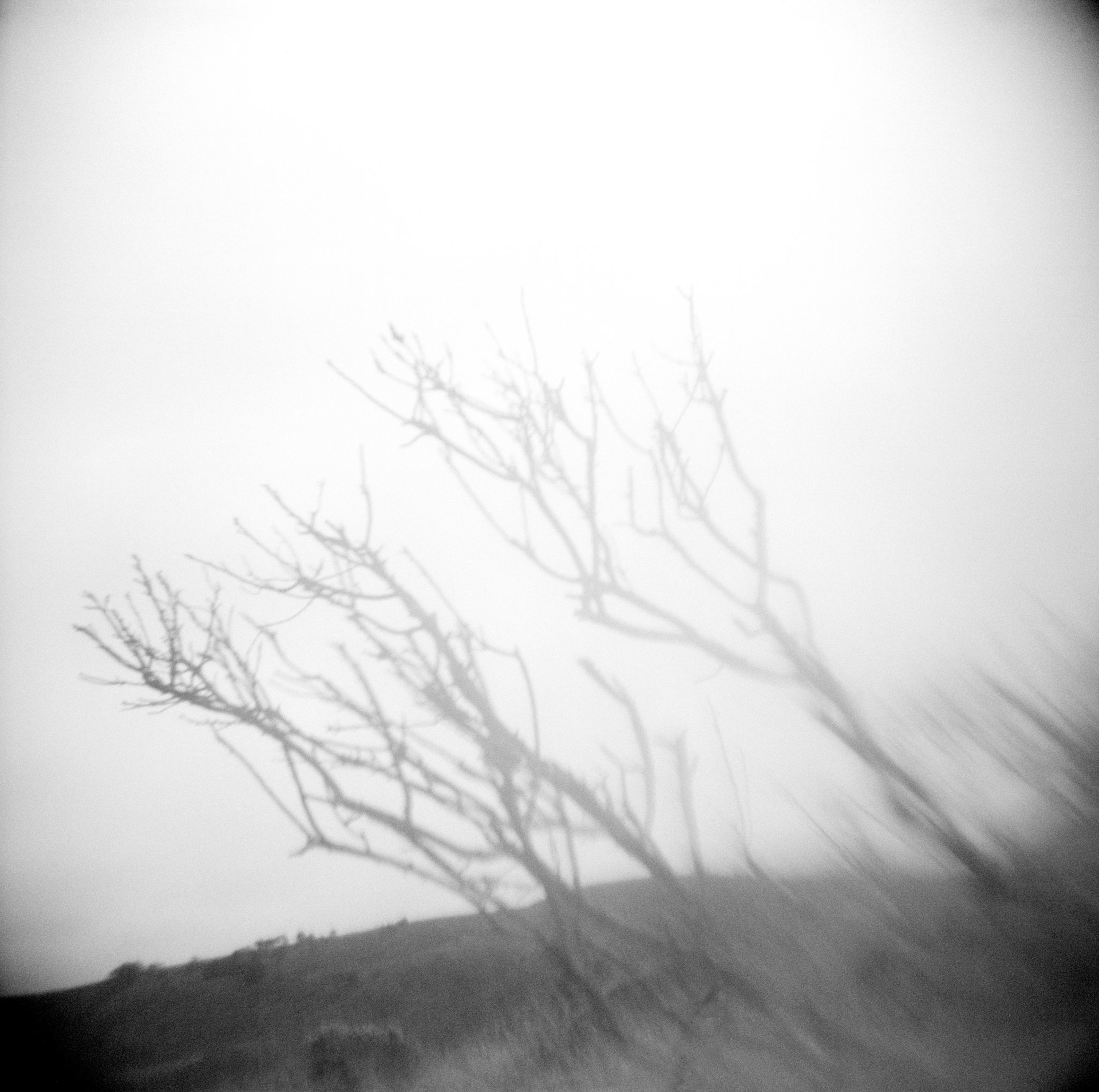These images were made at Point Reyes National Seashore in Marin County, California. This project was inspired by my first experience with the coast of the Pacific Northwest in the late 90s. Being from the east coast I was taken aback by the landscape. The black and white photographs in this series, made with a modified Holga camera, are the result of a contemplative interaction with the terrain. They interpret the topography and the constant flux of the environment and the impact of the elements upon the landscape.